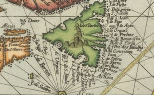 Notes de l’auteur : Carte documentée et répertoriée dans cet article : Toponymie ancienne et origine des noms Saint-Pierre, Miquelon et Langlade. In Le Marin du Nord, vol. VII. No 1. pp. 29-45.