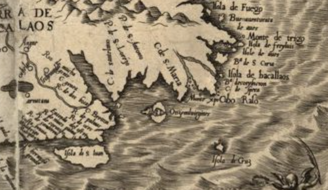 Notes de l’auteur : Carte documentée et répertoriée dans cet article : Toponymie ancienne et origine des noms Saint-Pierre, Miquelon et Langlade. In Le Marin du Nord, vol. VII. No 1. pp. 29-45.